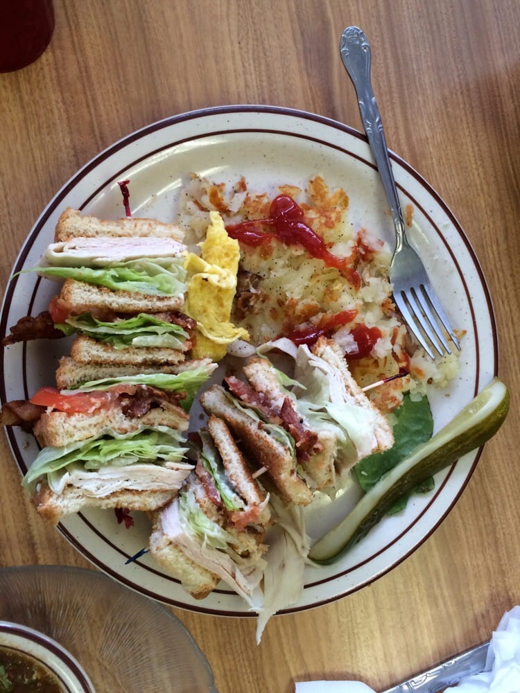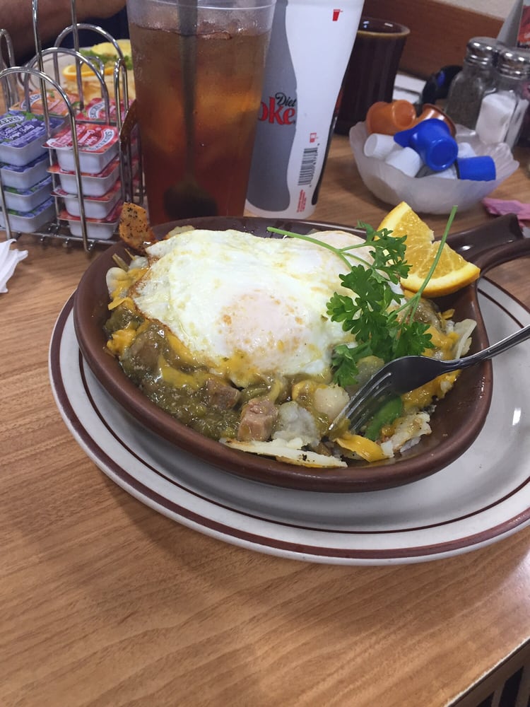 It was just ok. I ordered 3 eggs over easy with a side of bacon and sausage, sourdough toast and fruit. Eggs were good - head to screw up. Bacon was fine. Sausage was not good - small and you could tell it was the cheap frozen kind. Grapefruit juice seemed to have some sort of carbonation. It was different. Coworker ordered the chili verde scramble and it was super spicy. Never had spicy chili verde before. Had to send it back.